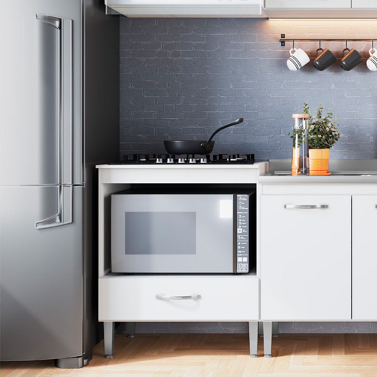 O Balcão Cooktop Light foi desenvolvido para quem busca praticidade, modernidade e organização em um único móvel. Ideal para cozinhas compactas ou completas, ele acomoda cooktop, forno ou micro-ondas e ainda oferece uma porta basculante para armazenar itens de forma rápida e funcional.
