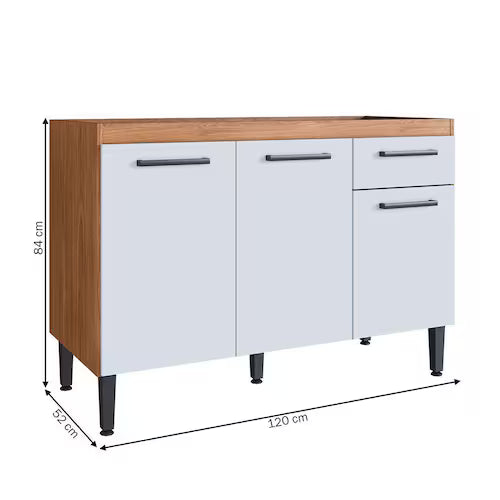 Balcão de Pia Giovanna — 120cm com 3 Portas e 1 Gaveta | Organização e Estilo para Sua Cozinha
