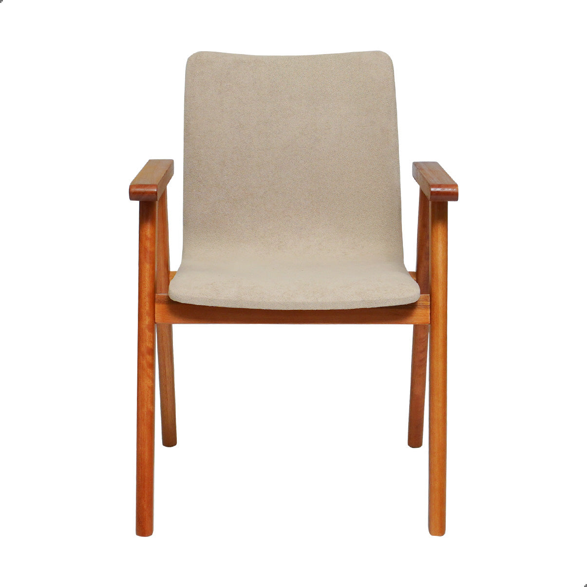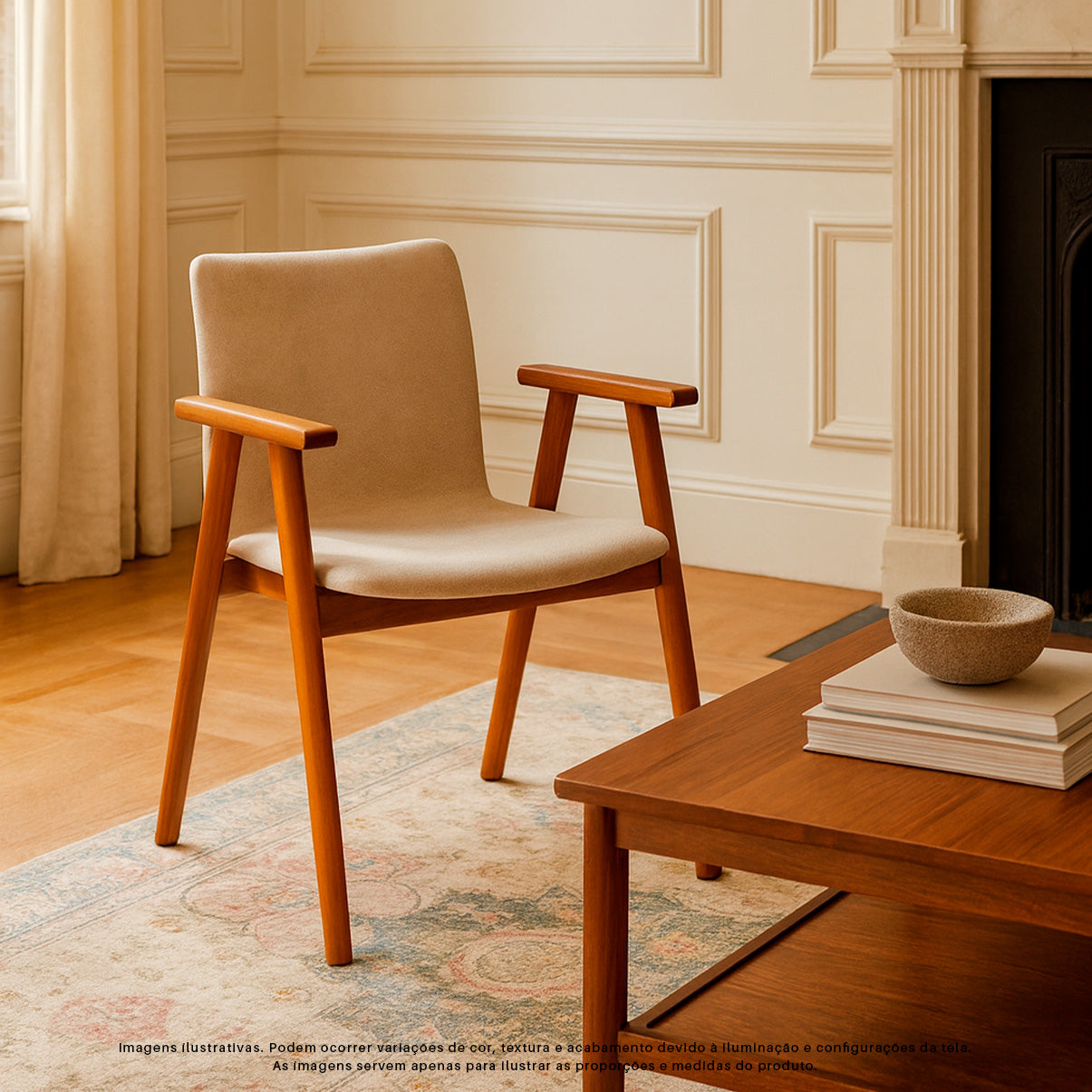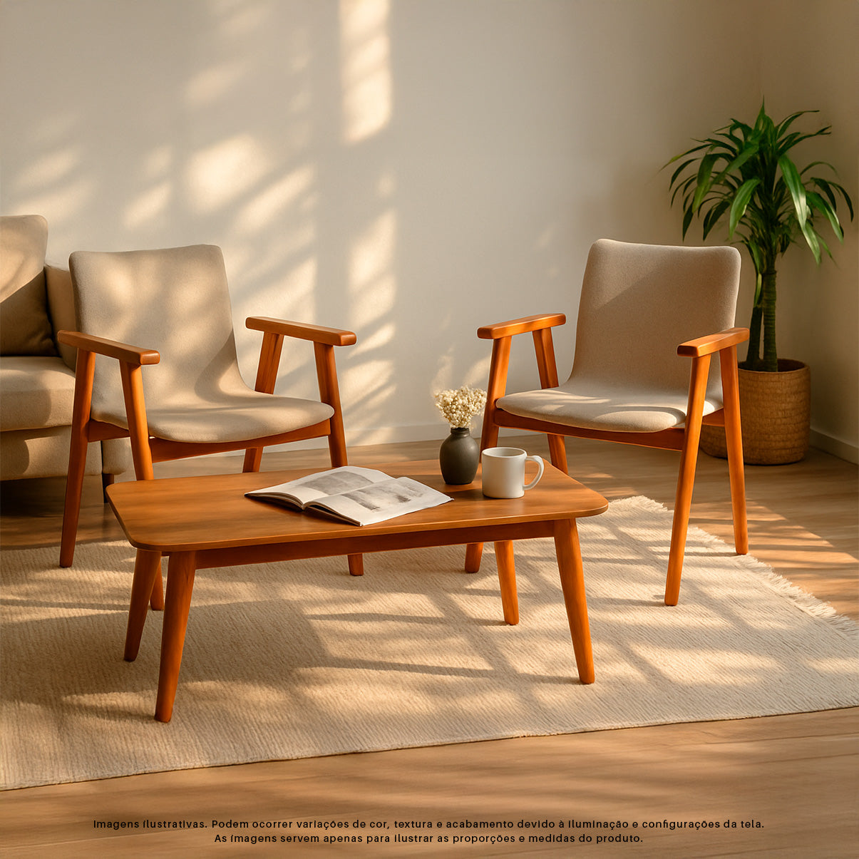 Corino sintético caramelo no assento e encosto com visual sofisticado.