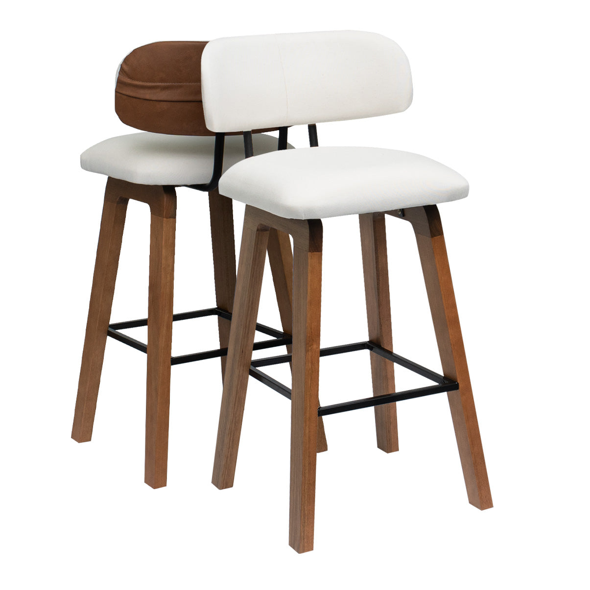 Kit 2 Banquetas Aurora — Madeira Maciça com Assento Estofado e Encosto Anatômico