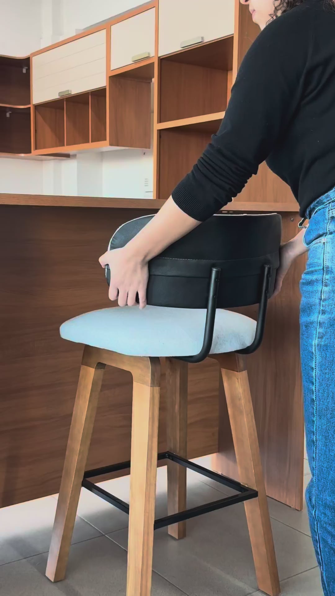 O Kit com 2 Banquetas Aurora une conforto, resistência e design sofisticado para compor cozinhas e áreas gourmet. Produzidas em madeira maciça de eucalipto, contam com assento estofado em espuma D-23 e encosto anatômico com densidade D-20, proporcionando ergonomia e durabilidade. Com estrutura firme e apoio de pés, suportam até 120 kg por unidade, sendo ideais para bancadas de 90 a 110 cm.