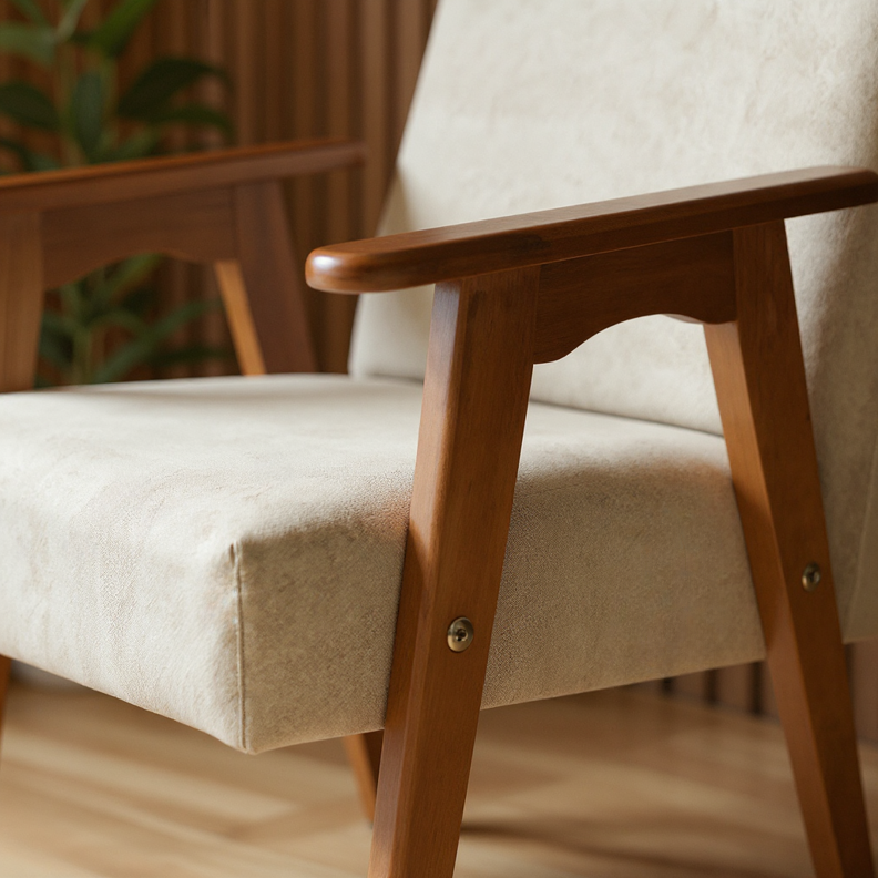 A Poltrona Veneza na versão com tecido bouclé combina o design elegante com a suavidade de um revestimento sofisticado. Seu estofado macio com espumas D-23 (assento) e D-20 (encosto) oferece o equilíbrio ideal entre firmeza e conforto. A estrutura em madeira de eucalipto maciça reforça a durabilidade e o charme natural da peça — perfeita para salas de estar, recepções e ambientes comerciais refinados.