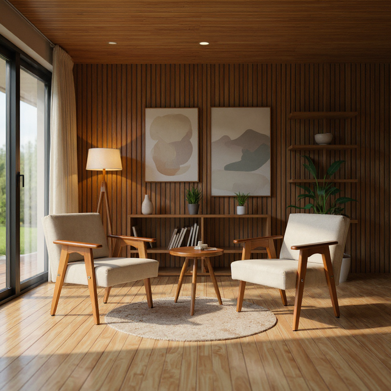 - • Estrutura: Madeira maciça de eucalipto